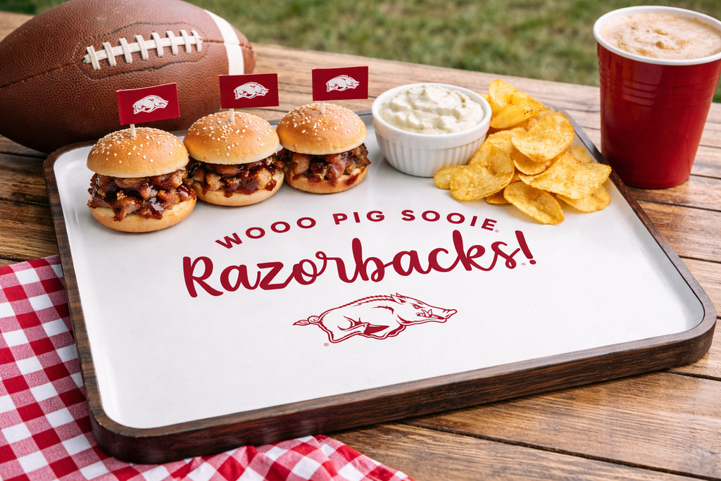 Serve in style with this officially licensed mango wood tray, featuring vibrant color detailing and a bold University logo. Crafted from durable, natural mango wood, it’s perfect for entertaining or everyday use. Whether hosting game-day snacks or displaying décor, this tray adds a touch of school spirit to any setting.